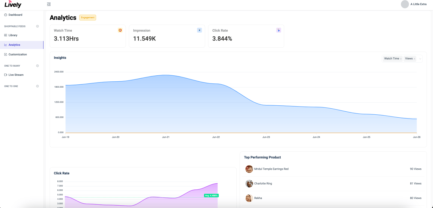 You can also track, analyze, and improve every aspect of your video performance with a visual overview of real-time data on Lively’s analytics dashboard.