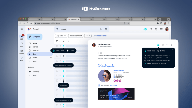 Plus, MySignature’s Chrome extension tracks email opens and clicks from your Gmail, as well as offers automatic signature installation and updates.