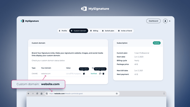 With MySignature, you’ll get a custom domain (CNAME) to improve email deliverability and increase your chances of landing in the primary inbox—not spam!