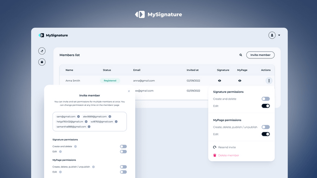 Simply jump into the permission settings to invite and manage other MySignature users.