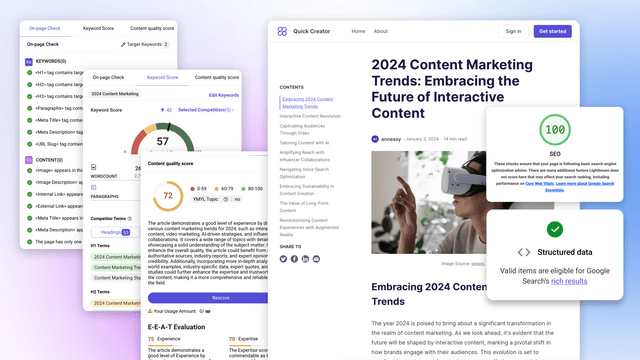Quick Creator is an AI platform packed with all the tools you need to boost your blog’s visibility in search engines.