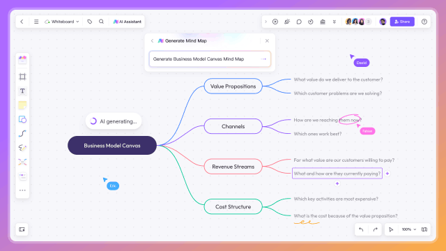 Create mind maps, diagrams, presentations, sticky notes, and more in seconds with generative AI
