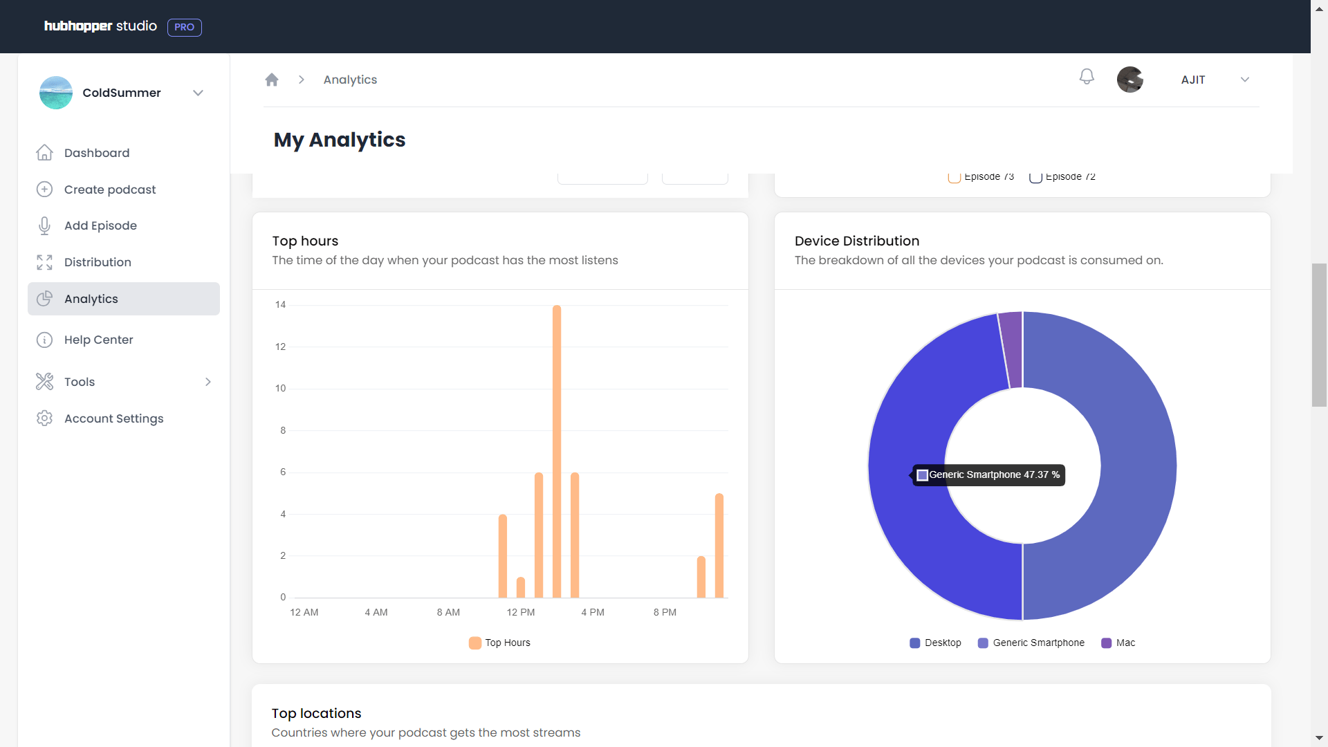 Get data on your show’s performance and individual episodes with in-depth stats like total streams and total listens.