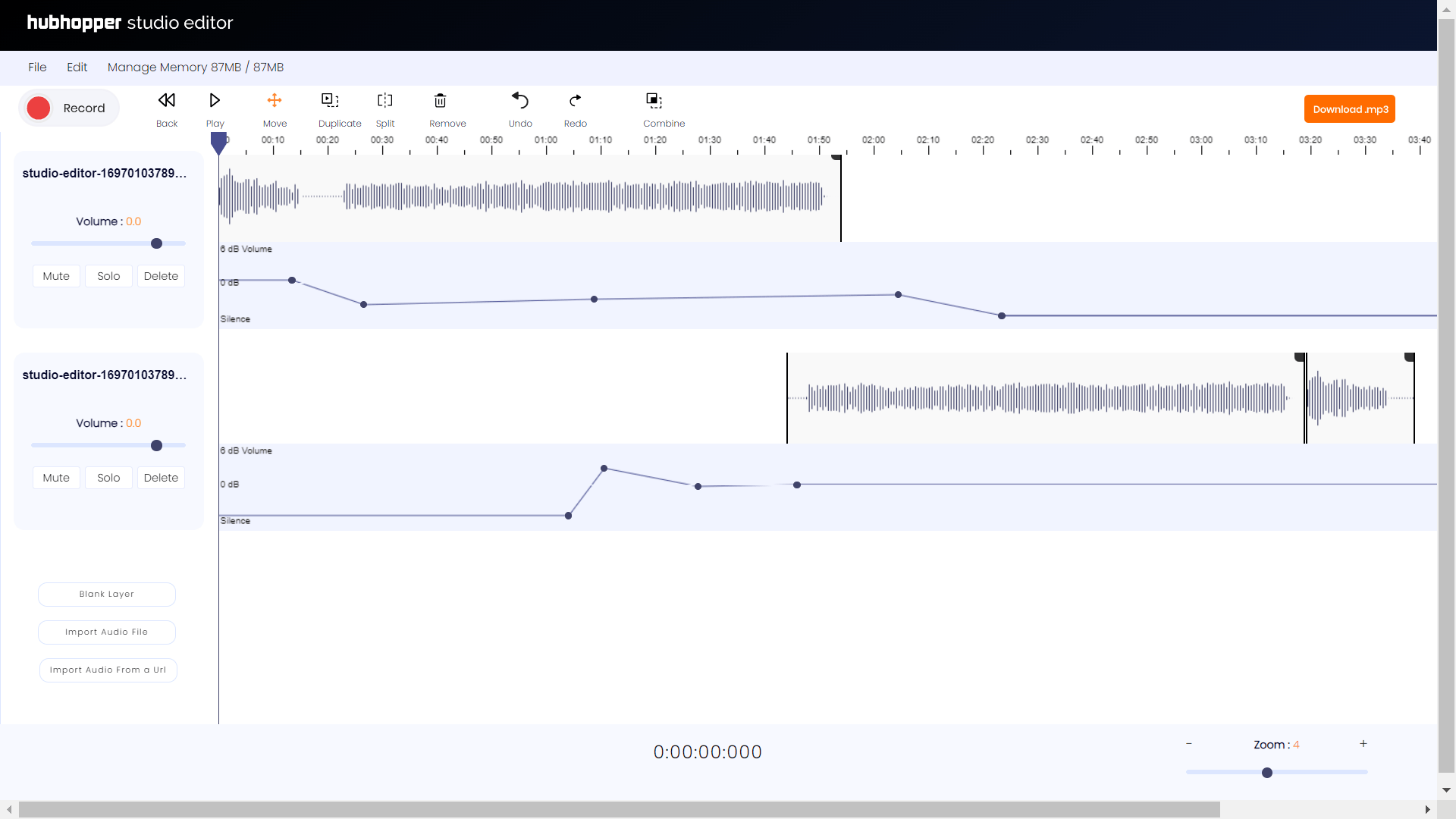 Thanks to the intuitive drag-and-drop functionality, you’ll be able to visualize, edit, and rearrange your audio segments.