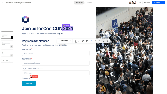 Thanks to Whirr’s simple, command-based builder, you’ll be able to launch mobile-ready forms that are super easy to navigate.