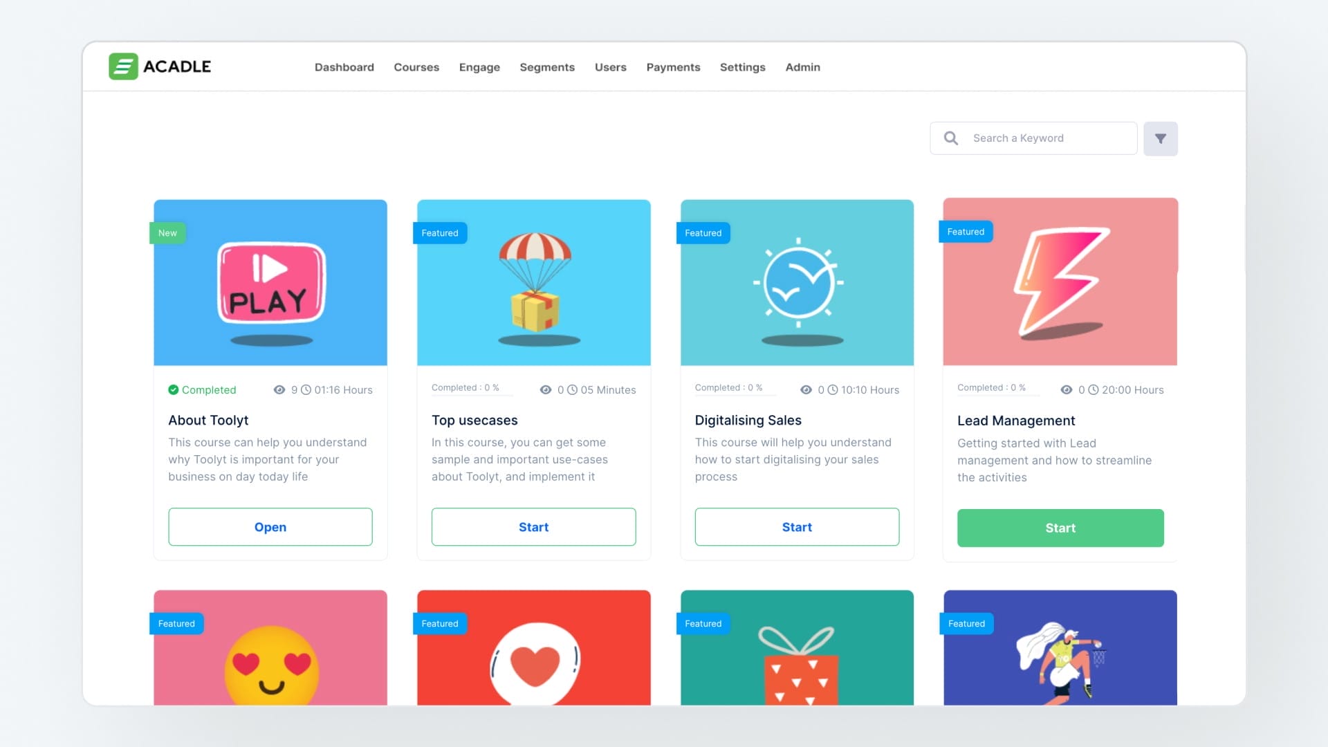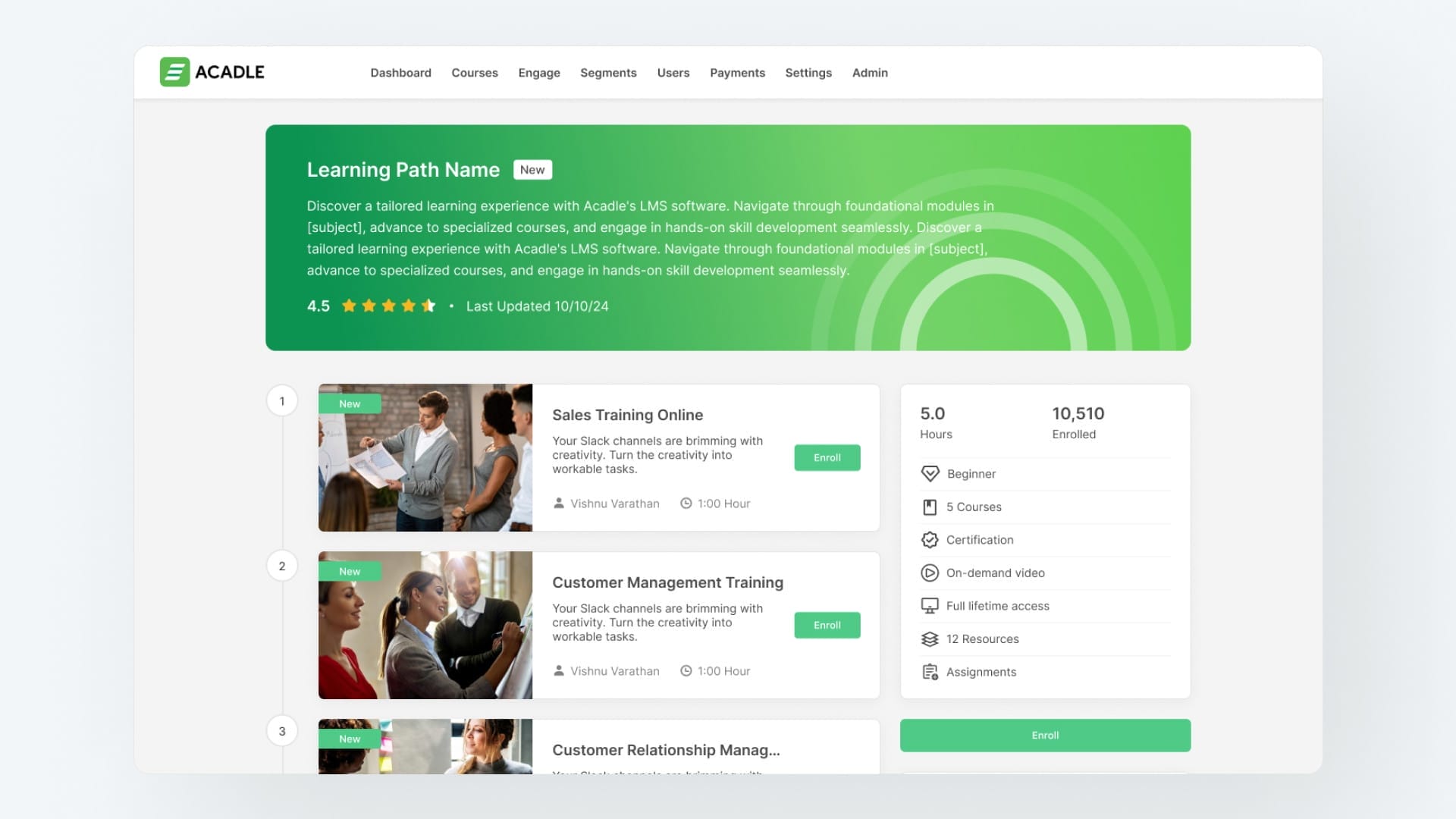 Acadle lets you create interactive online courses with dynamic features like discussion forums, customizable learning paths, and shareable certificates.