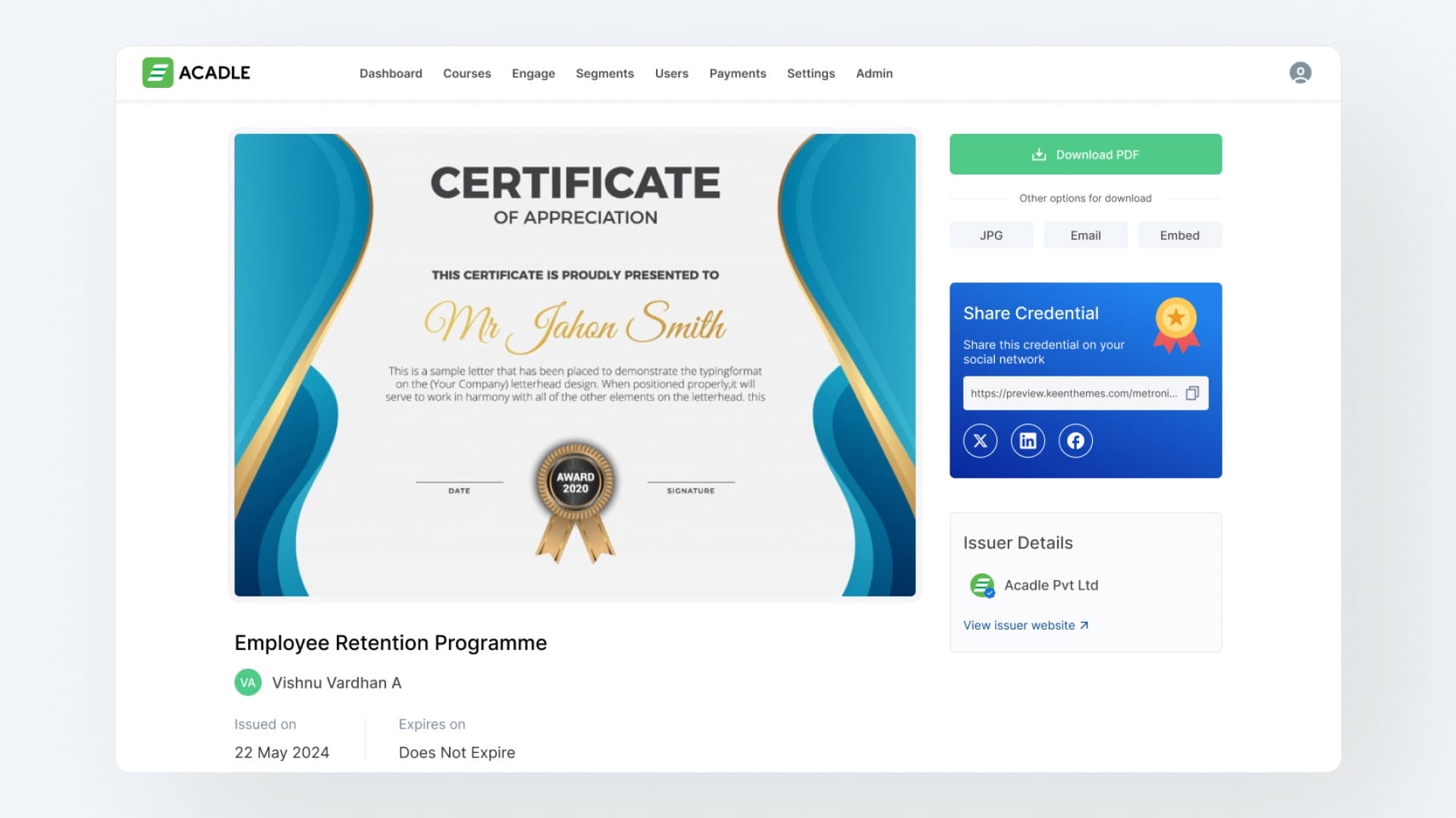 Plus, you can create learning certificates and host a public certification page that users can share on social media to show off their achievements.