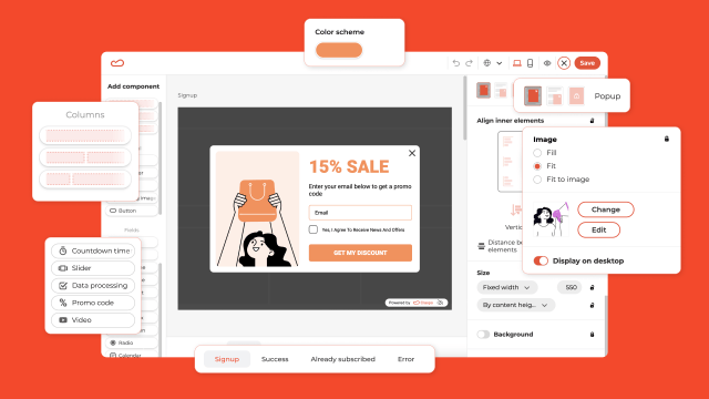 Create customized pop-ups using an intuitive drag-and-drop editor and 700+ templates