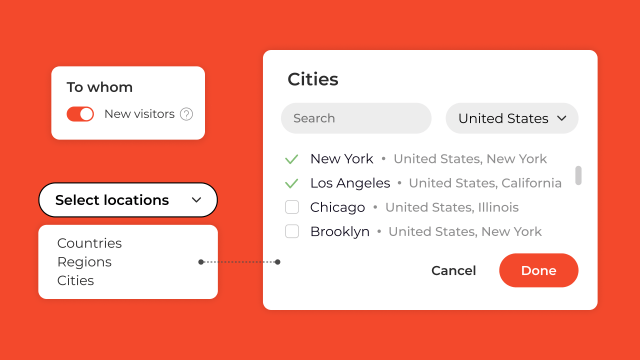 Leverage advanced targeting options based on geolocation, UTM tags, and user behavior.