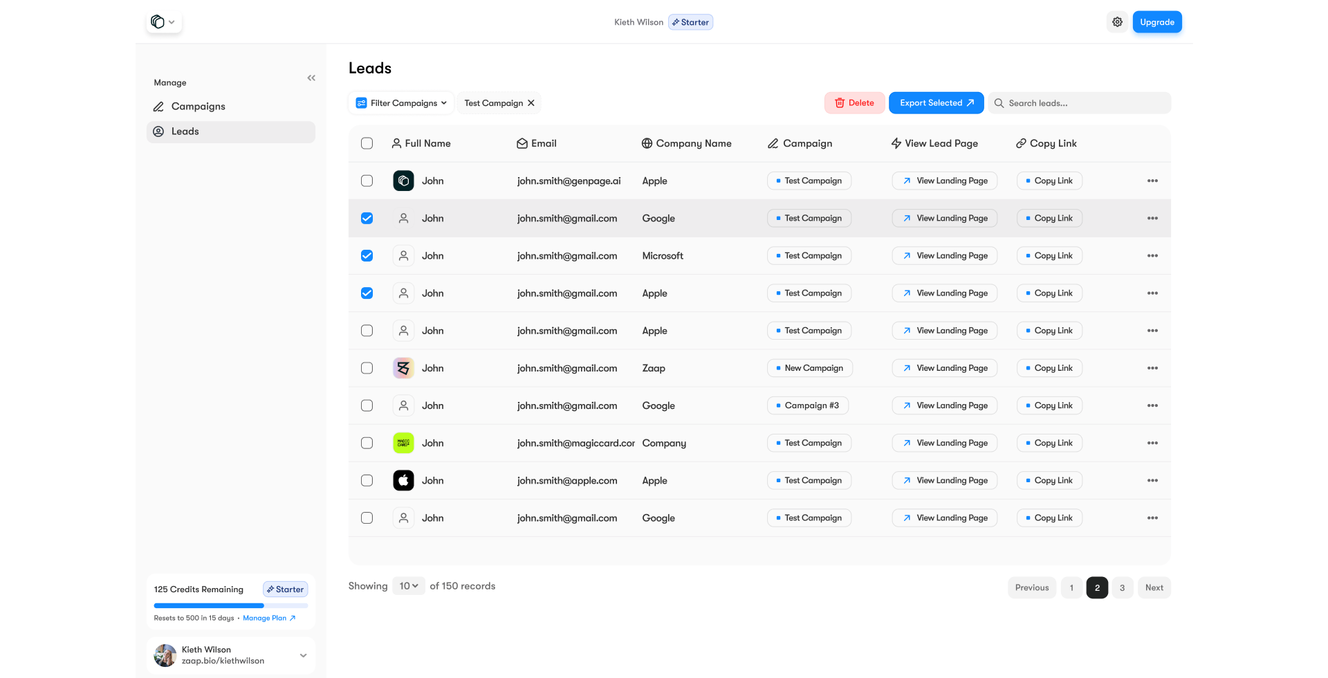 Best of all, GenPage lets you organize all of your imported leads across all your campaigns in one place.