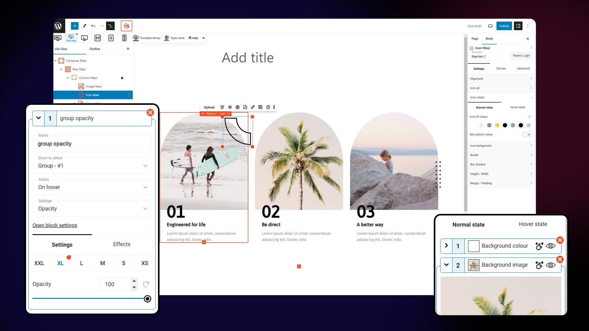 Stop wasting days scouring the internet for the perfect icon or shape! MaxiBlocks lets you choose from over 13,400 customizable elements to get started.