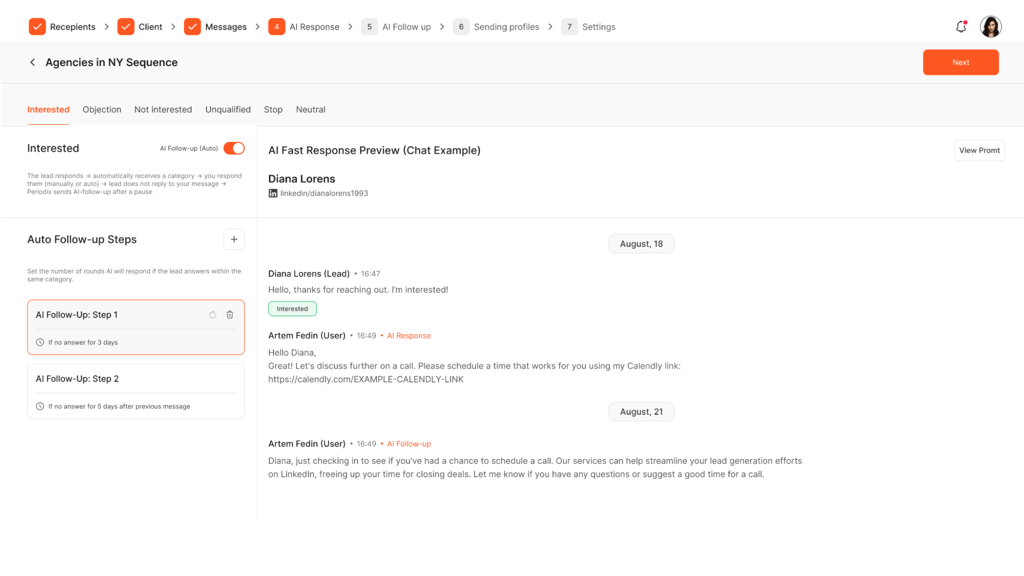 Not sure how to revive a dead conversation? Periodix makes it easy to follow up with leads who’ve gone silent.