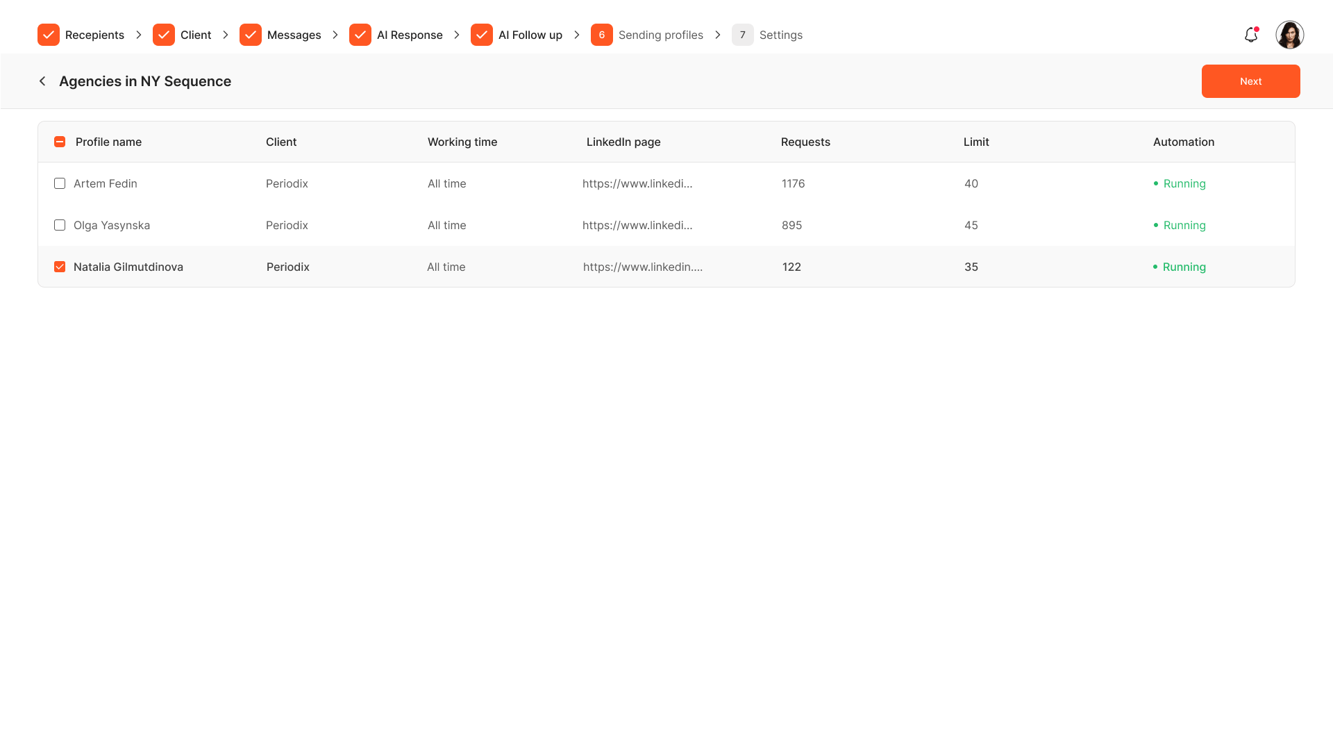 Add multiple profiles to your outreach campaigns to connect with more prospects.