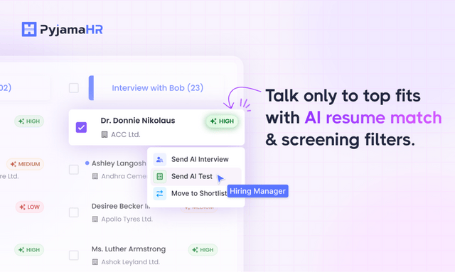 PyjamaHR’s AI interviews thousands of candidates at once, narrowing down the talent pool fast.