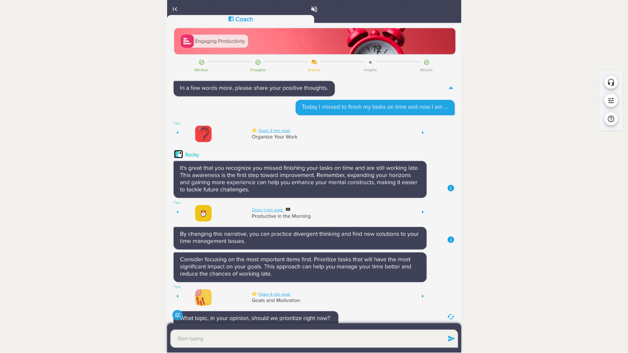 Or start with Rocky AI’s coaching and learning templates like life-balance, relationships, and productivity