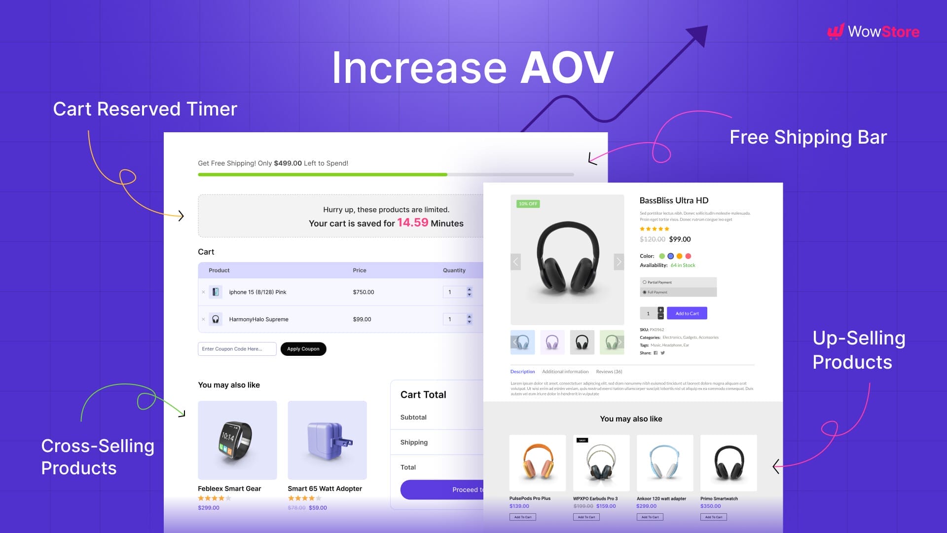Boost your average order value with upsell, cross-sell, and urgency features.