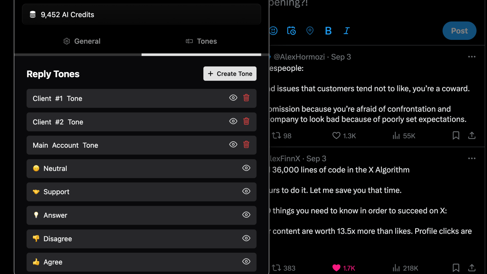 Generate personalized replies to posts on X and LinkedIn posts with just one click.