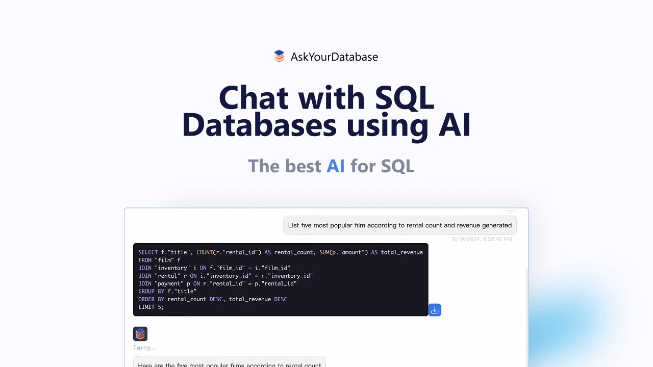 Stop wrestling with complex database queries. AskYourDatabase simplifies your data interactions, turning questions into answers in seconds.