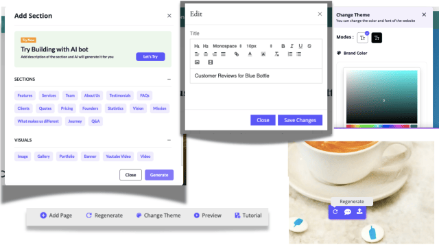 Enter your business name and relevant keywords to generate a full-fledged website in a snap.
