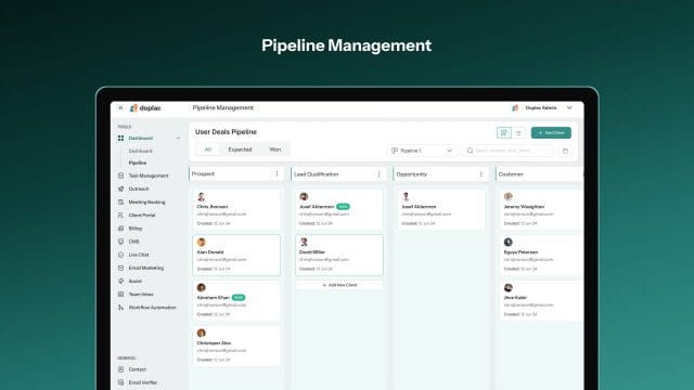 Doplac helps you automate outreach, manage your pipeline, close more clients, and create a new revenue stream with white labeling capabilities.
