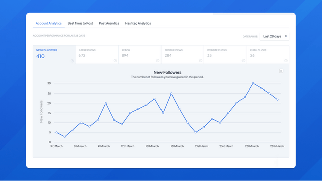 Track post engagement, top-performing hashtags, and account growth to optimize your content.