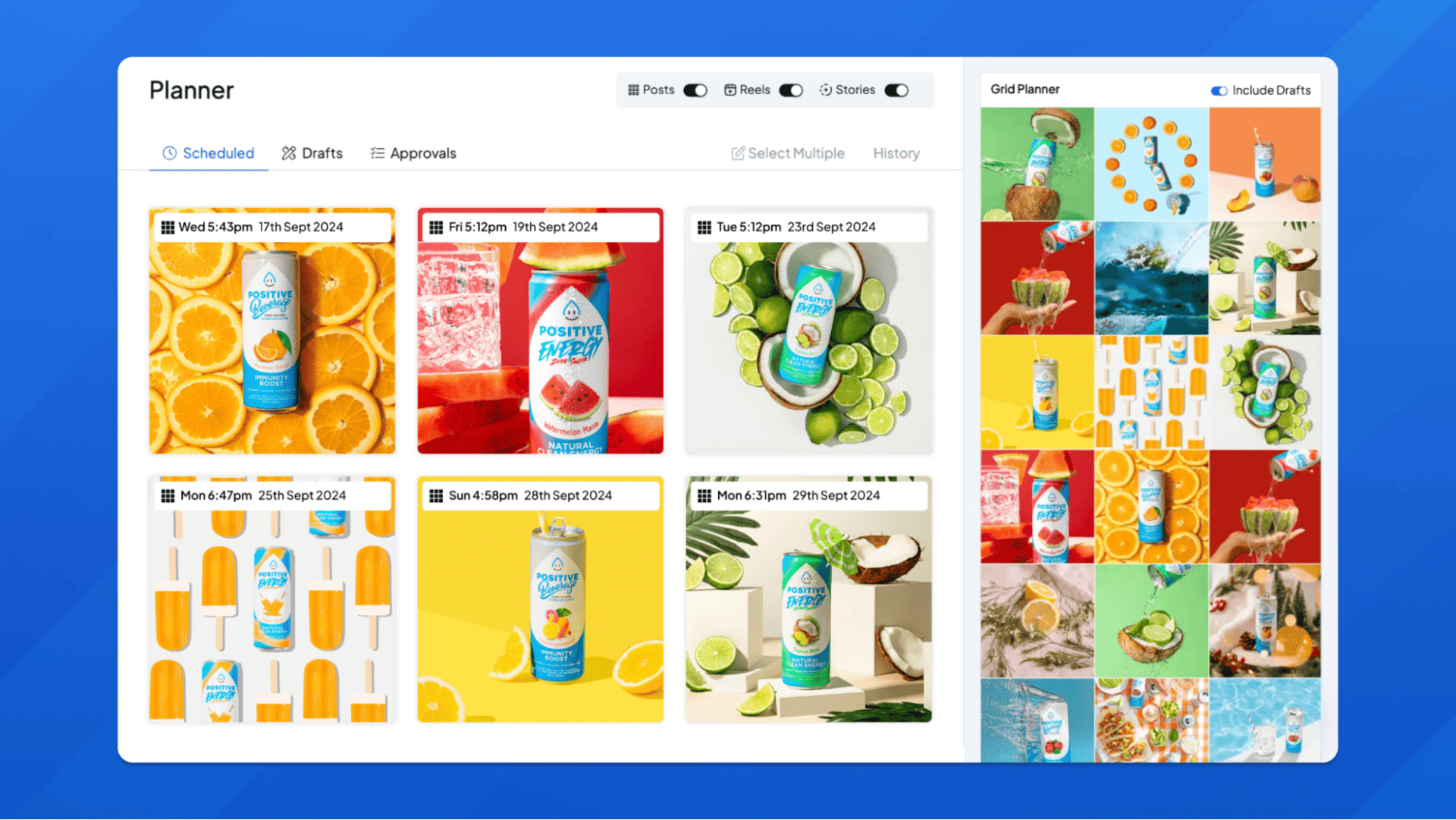Tweak your feed with the grid planner, then schedule content across all your social media accounts