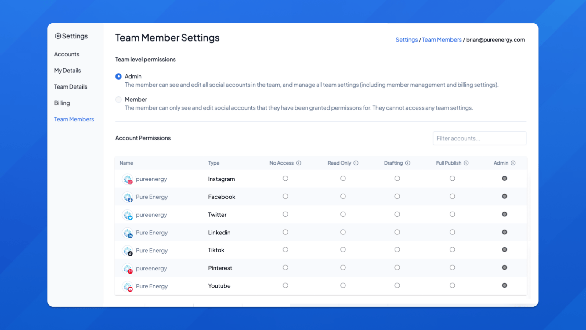 You’ll be able to invite team members so everyone can work on content, leave feedback, and approve posts together.