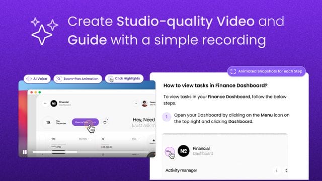 Create studio-quality videos and step-by-step guides with click highlights, effects, GIFs, AI voiceovers, and custom branding