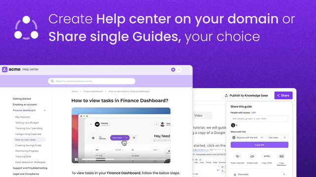 Auto-generate how-to videos and step-by-step guides to host on your custom-built knowledge base