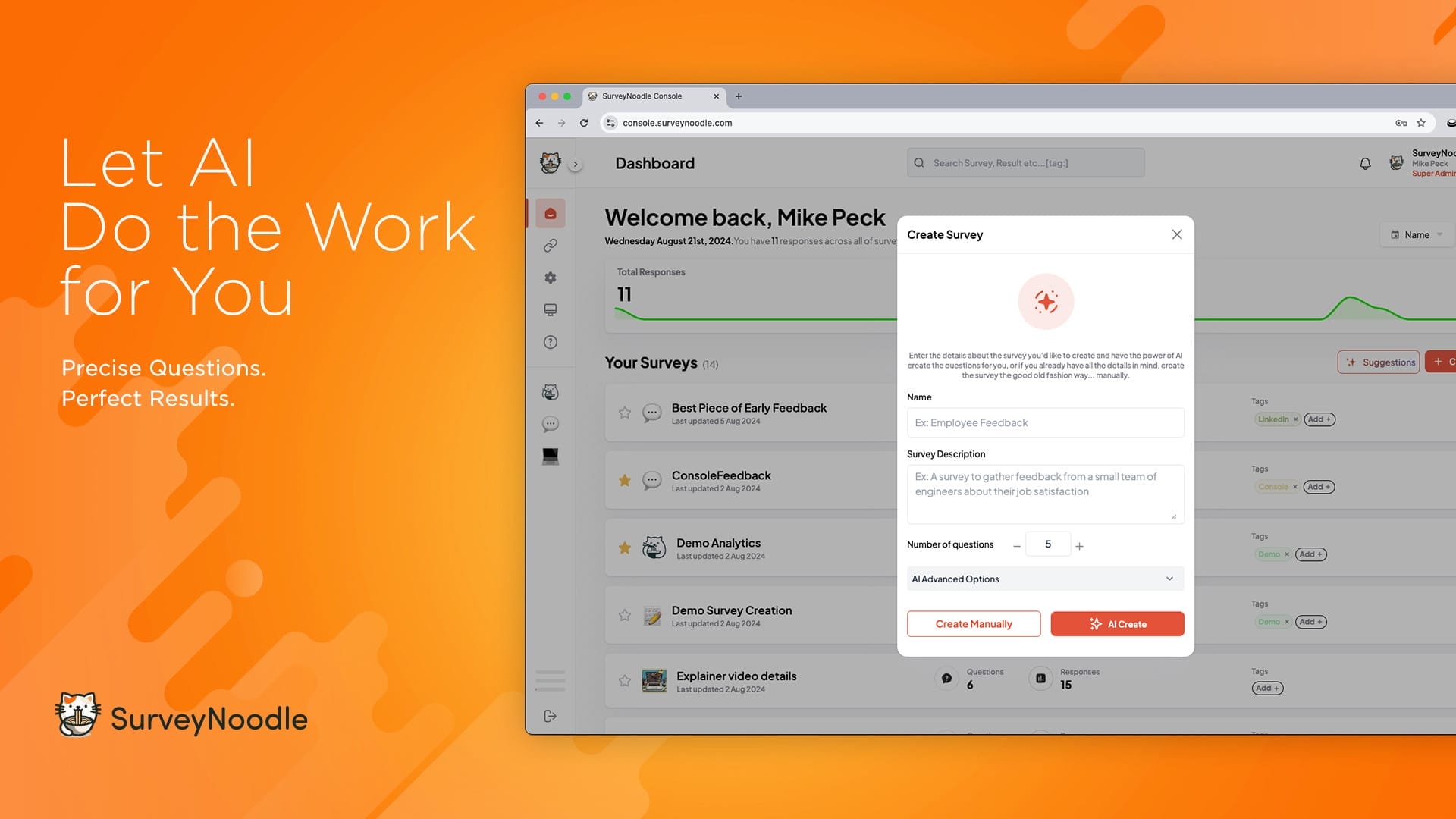 Using the power of AI, SurveyNoodle lets you whip up custom surveys for any use case without breaking a sweat.