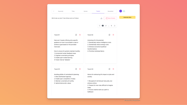 Repurpose your content into 30+ text formats, including tweets, LinkedIn posts, newsletters, and blog posts