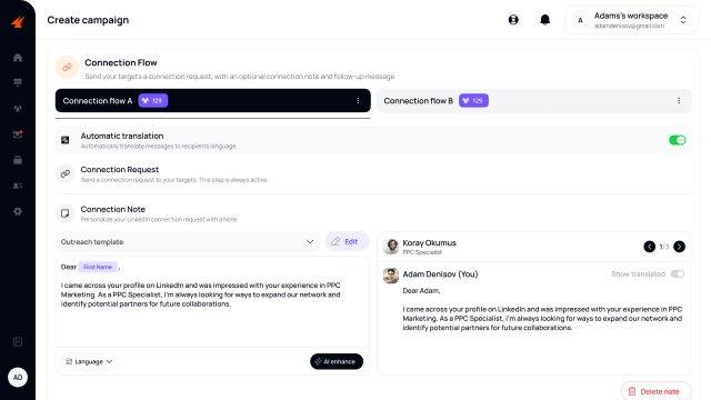Getting started on Aimfox is easy—simply choose a campaign type and then create a multi-step sequence of connection requests and messages.