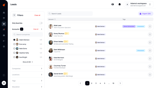 Plus, Aimfox makes it easy to compile all your connections into a shared workspace for better team collaboration.