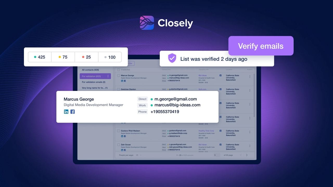 Closely’s built-in email validator allows you to verify the validity of your email lists and improve the performance of your outreach campaigns.