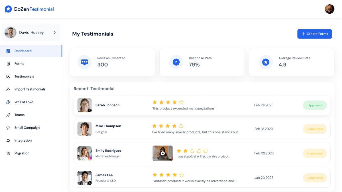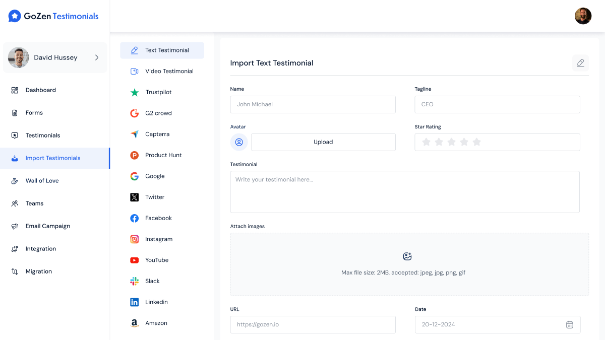 No need to start from scratch! In just a few clicks, you can import customer feedback from other platforms into GoZen Testimonials.