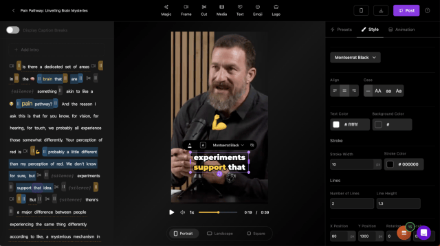 Generate clips from long-form videos, complete with subtitles, b-roll, emojis, and more