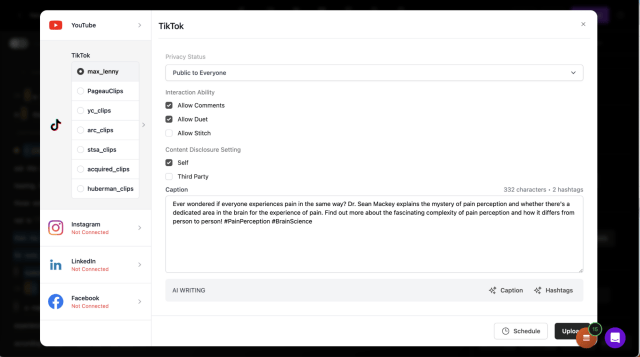 Thanks to Minvo, uploading content across TikTok, YouTube, Instagram, and LinkedIn doesn’t have to feel overwhelming anymore!
