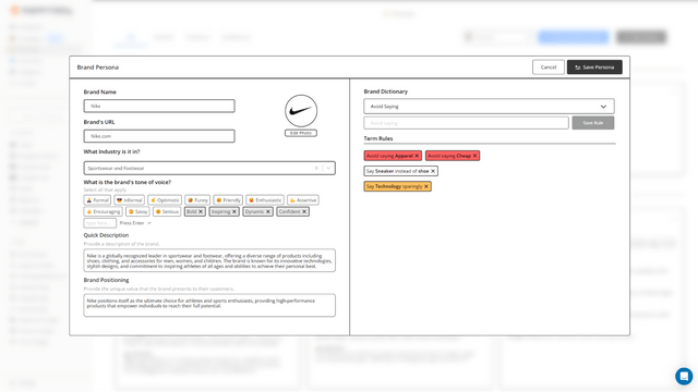 SuperCopy.ai lets you whip up comprehensive personas for your brand, product, or audience in a matter of minutes.