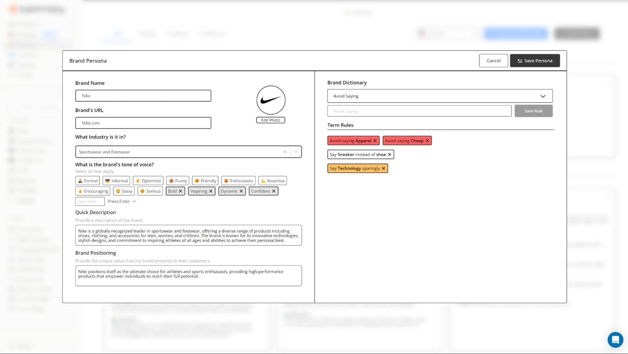 Save brand and audience personas to your library for future reference
