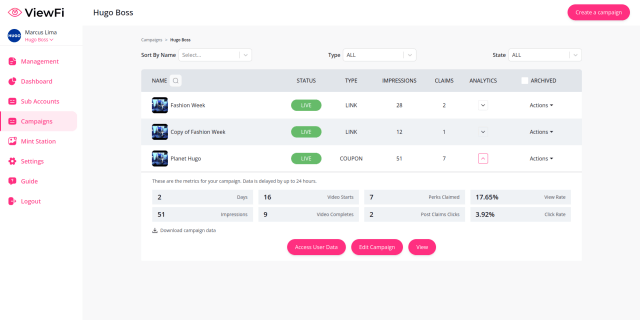 Dive into all your video campaign metrics right from ViewFi’s video player.