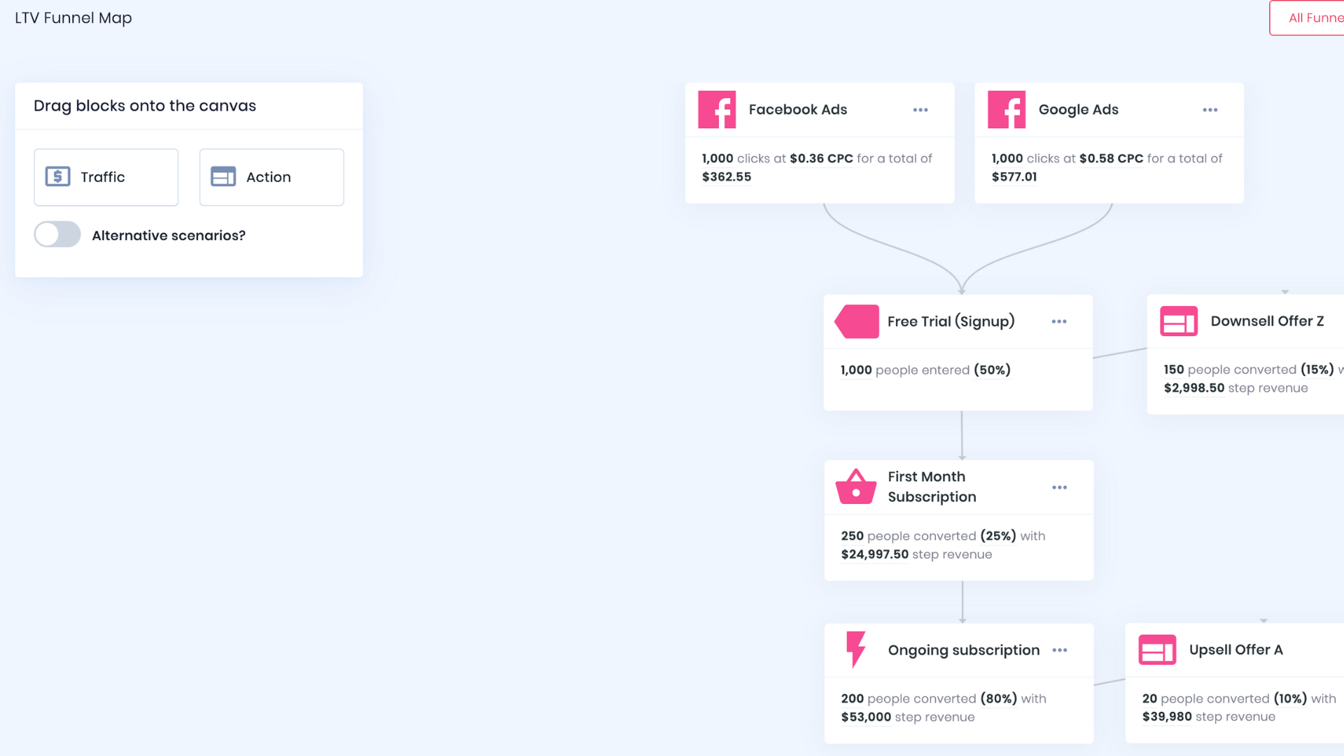 Visually map out your entire marketing funnel and predict customer lifetime value.
