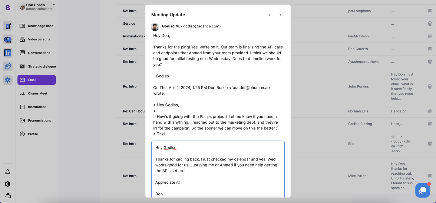 In just a few clicks, you can use your AI clone to automatically reply to emails