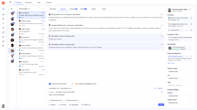 Even better, GetSales lets you automatically synchronize communications from LinkedIn profiles and email inboxes to capture your entire message history.