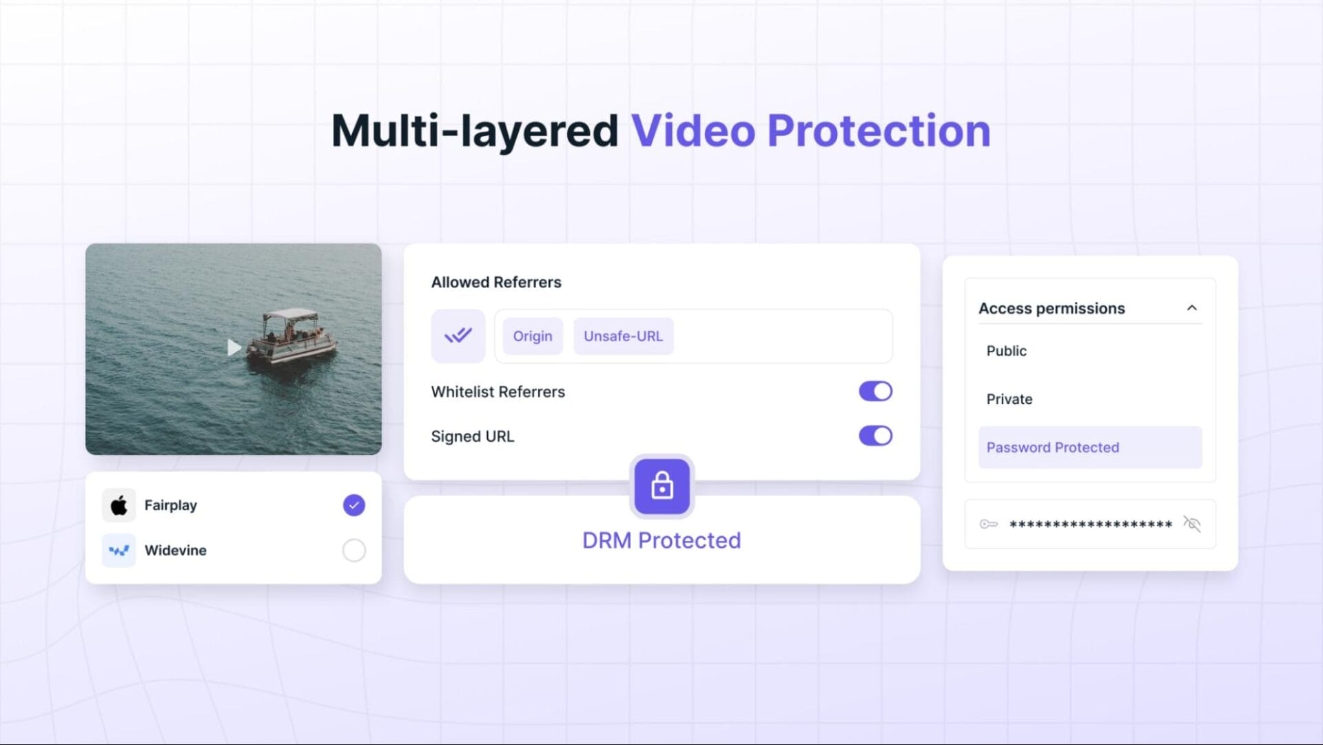 Keep your videos safe from online theft with advanced DRM encryption and multi-level protection.