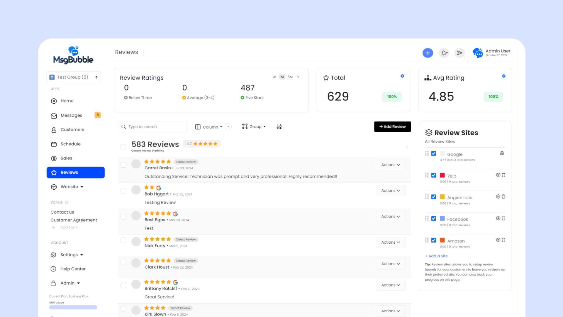 You can also collect, manage, and respond to all your customer reviews with MsgBubble’s built-in review management system.