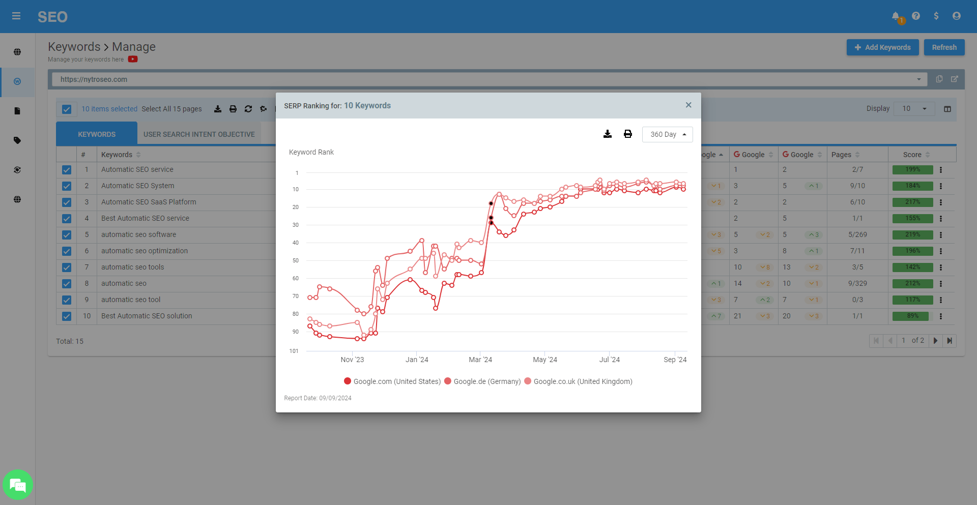 Since ranking volatility is so common, the adaptive AI identifies ranking drops and implements corrective measures.