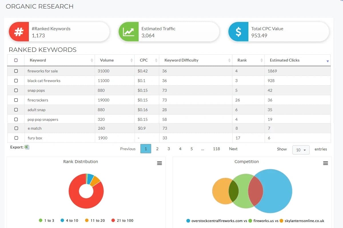 SheerSEO has a robust database of rankings and keywords, so you can discover which keywords give your competitors the most traffic and rank the easiest.
