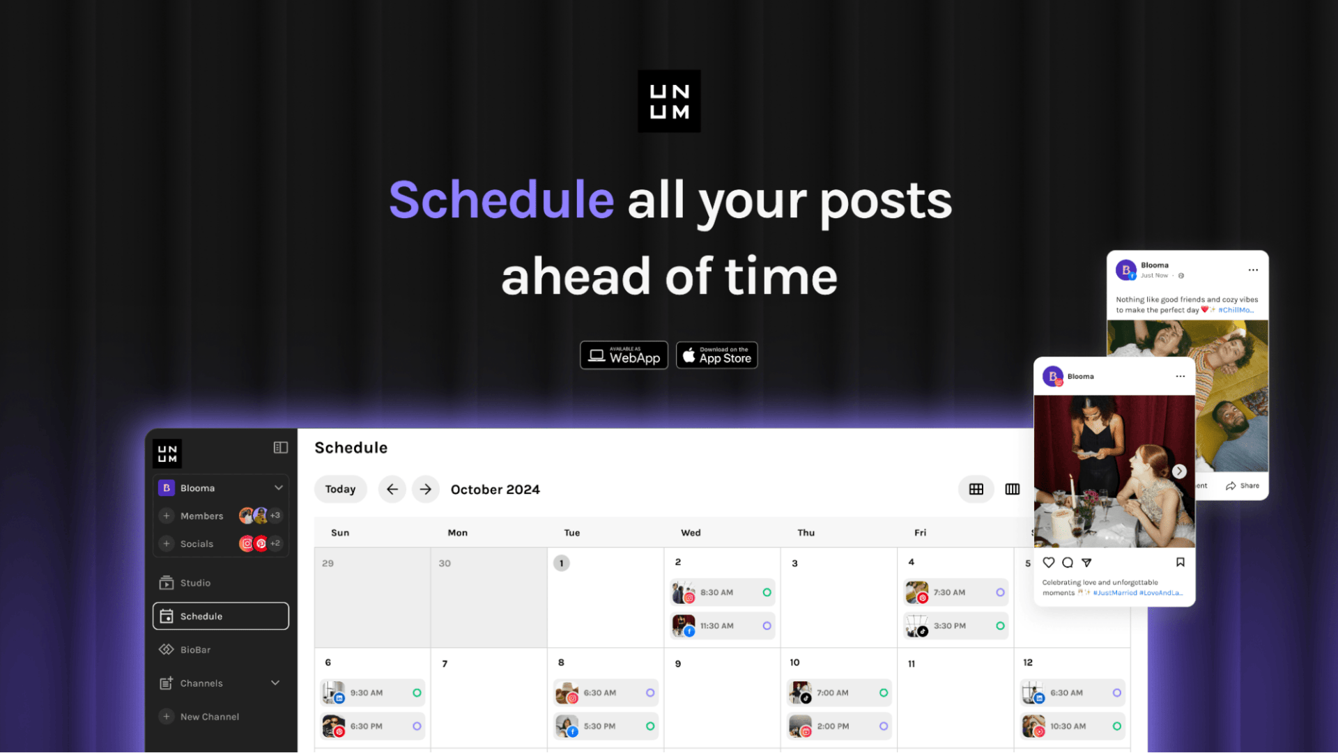 UNUM has everything you need to plan, create, schedule, and analyze social media content across channels—all in one convenient place.