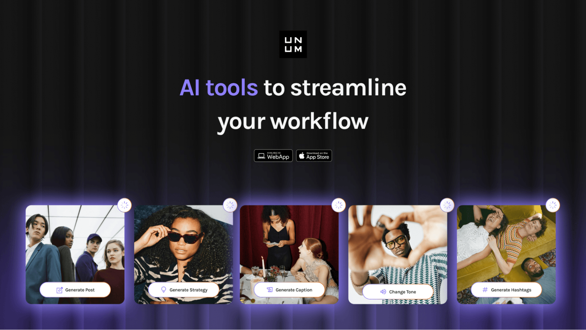 UNUM is an AI-powered social media marketing toolkit that helps you save time, post more content, and grow your audience.