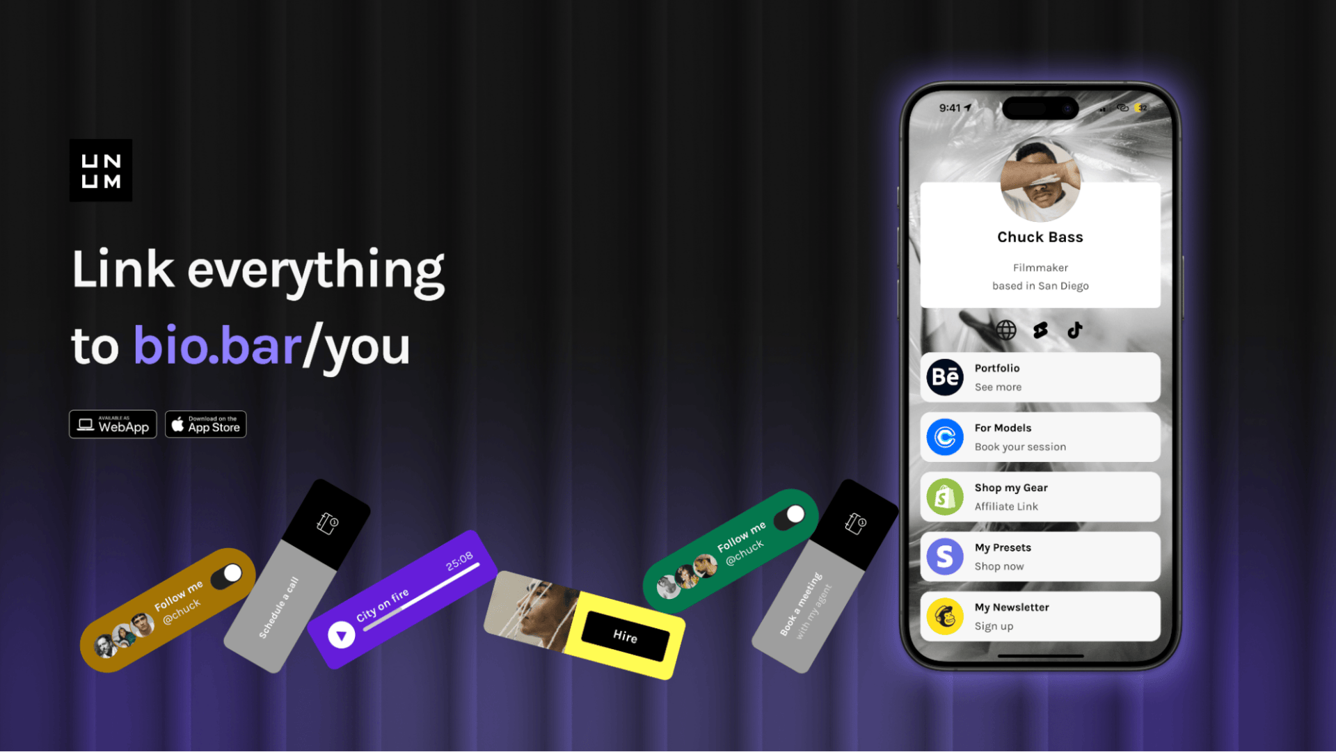 And because UNUM lets you design a custom link-in-bio page (called bio.bar), you can spotlight links and turn profile views into conversions.